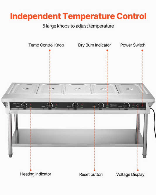 5-Pan Commercial Food Warmer Steam Table with Independent Temperature Control