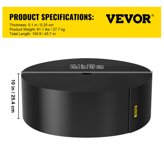 VEVOR Landscape Edging, 10 inch Depth 150 ft Total Length, Recycled HDPE Coiled Terrace Board, Flexible Bender Border for Landscaping, Lawn, Garden, Yard, Against Invading Weeds, Black