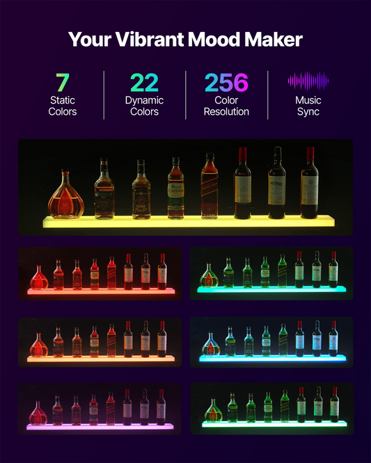 VEVOR LED Lighted Liquor Bottle Display 1-Tier 48 Inches for 12 Bottles