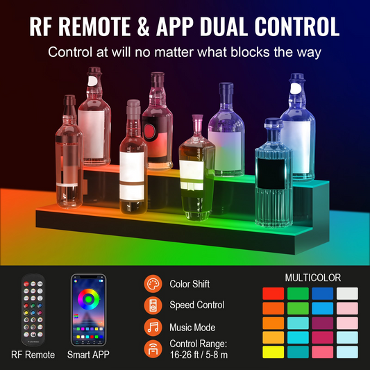 VEVOR LED Lighted Liquor Bottle Display Bar Shelf RF & App Control 16" 4-Step