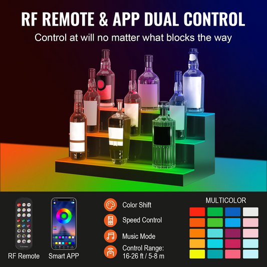 VEVOR LED Lighted Liquor Bottle Display Bar Shelf RF & App Control 16" 3-Step