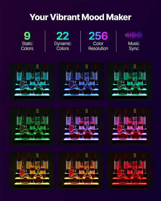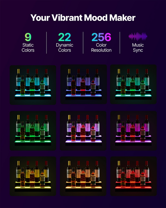 VEVOR LED Lighted Liquor Bottle Display Bar Shelf RF & App Control 24" 2-Step