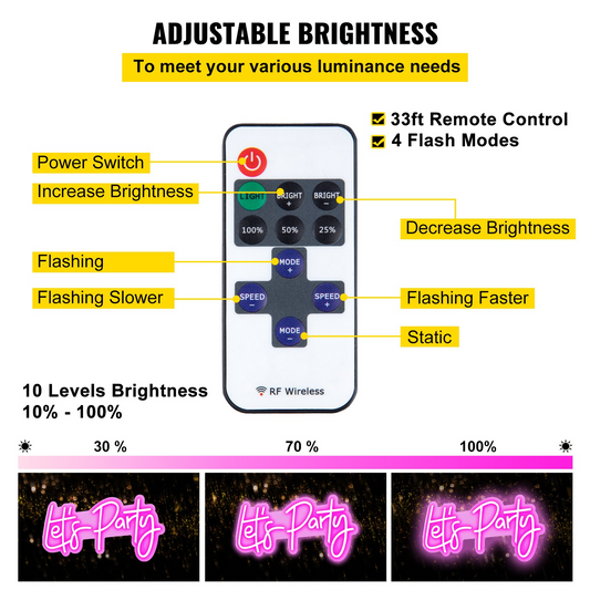 VEVOR Let's Party Neon Sign, 23"X10" Neon Sign for Wall Decor, Adjustable Brightness Pink Neon Light Sign with Remote Control and Power Adapter, for Party/Wedding Celebration/Home Decoration