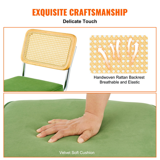 VEVOR Rattan Dining Chairs Set of 2, Mid Century Modern Dining Chair, Upholstered Velvet Accent Chair with Rattan Back, Retro Dining Room Kitchen Chair for Living Room, Bedroom, Office (18.1 Inch)