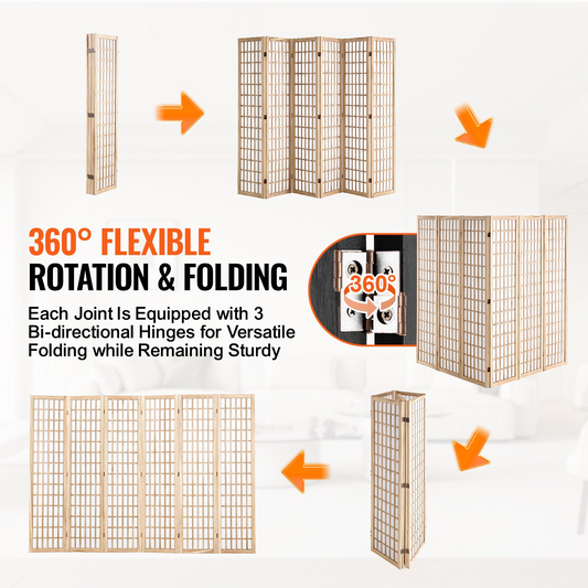 VEVOR Room Divider, 6 Panel Japanese Room Divider, Wood Folding Privacy Screen Indoor, Japanese Partition Dividers Portable Decoration Screens, for Room Separation Home Office Restaurant & Bedroom