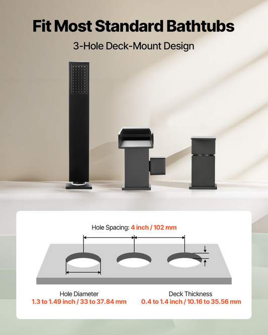 VEVOR Roman Tub Faucet 3 Hole Waterfall Bathtub Faucet with 1 Handle Black