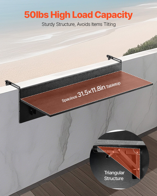 Balcony Hanging Table 12 x 32 in Outdoor Patio Railing Bar Table Foldable