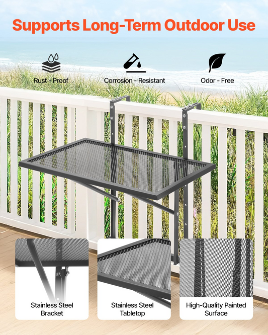 Balcony Hanging Table 19 x 24 in Outdoor Metal Patio Railing Table Adjustable