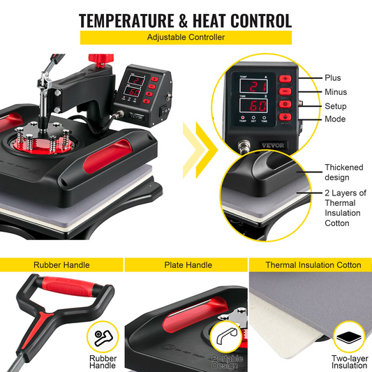 VEVOR Upgrade Heat Press Machine ETL Safety Certification 15 x 15 in 8-in-1 Heat Press Power-Saving Sublimation Machine 360°Rotation Heat Press Shirt Printing Machine for Shirts Cap & Mugs Red