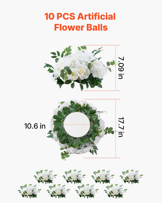 Flower Balls for Wedding Centerpieces 17.7-Inch Fake Flower Arrangement 10 PCS