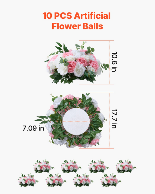 Flower Balls for Wedding Centerpieces Fake Flower Arrangement Pink + White 10PCS