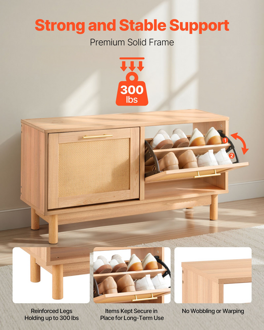 Entryway Shoe Storage Bench 39.4x11.8x20.9Inch Rattan-Like Rack with Flip Drawer