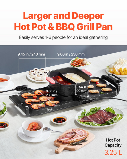 Hot Pot with Grill 2300W 2-in-1 Electric Smokeless BBQ Pan with Removable Pot
