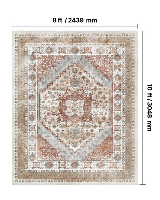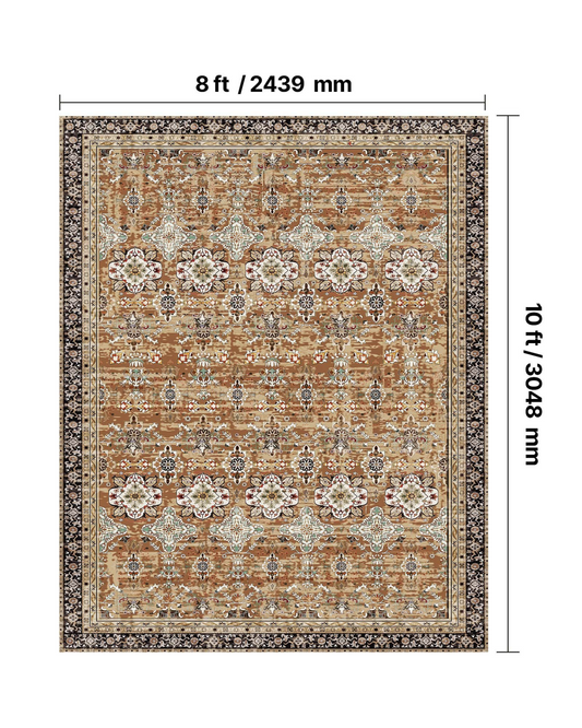 Large Area Rug 8 x 10 ft Anti-Skid Tear-Resistant Floor Mat Vintage Brown Red