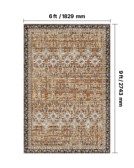 Large Area Rug 6 x 9 ft Anti-Skid Tear-Resistant Floor Mat Vintage Brown Green