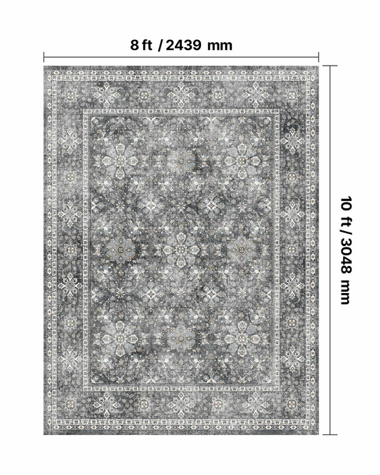 Large Area Rug 8 x 10 ft Anti-Skid and Tear-Resistant Floor Mat Vintage Gray