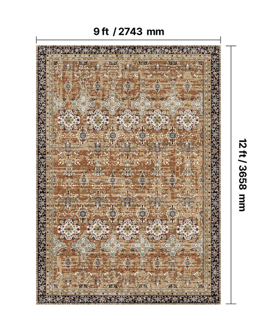 Large Area Rug 9 x 12 ft Anti-Skid Tear-Resistant Floor Mat Vintage Brown Red
