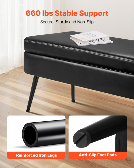 PU Leather Storage Ottoman Bench Shoe Seat with Storage & Metal Legs Black
