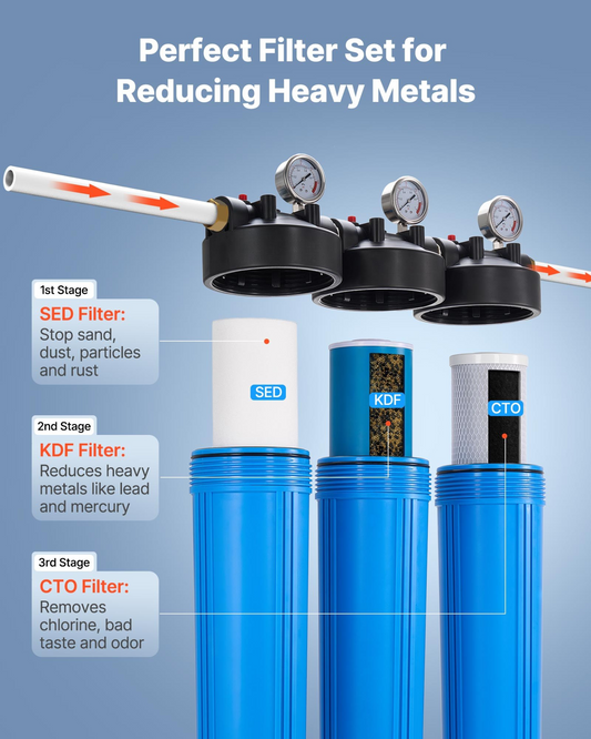 VEVOR Whole House Water Filter System, 3-Stage | Sediment, KDF, CTO | 4.5" x 20" Home Water Purifier Filter Reduce Heavy Metal, Lead, Mercury, Chlorine, Bad Taste, Odor, Rust