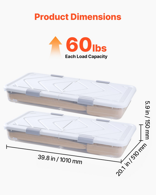 Under Bed Storage with Wheels 39.8x20.1x5.9 Inch Rolling Storage Bags 2 Pack