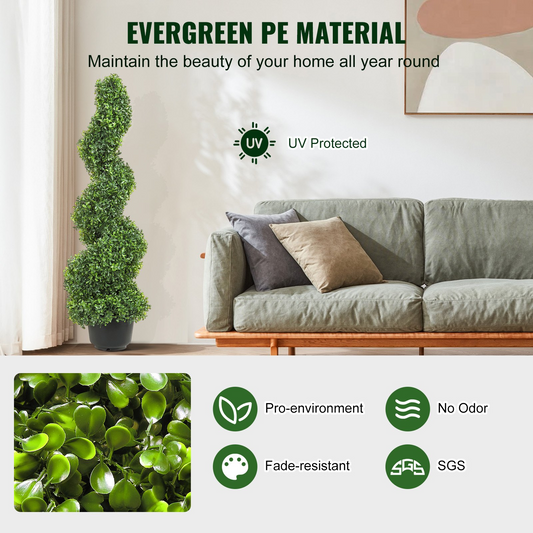 VEVOR 2 pcs. Artificial Boxwood Tower Topiary Spiral Artificial Plant 122cm high Decorative Plant Green Plastic PE Iron Topiary Plants incl. 10 pcs. Replacement Leaves