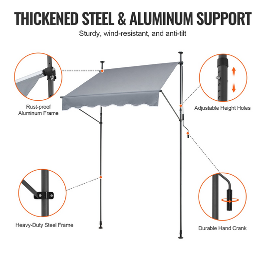 VEVOR 59x47" Patio Awning Retractable Awning Sunshade Shelter with Crank Handle
