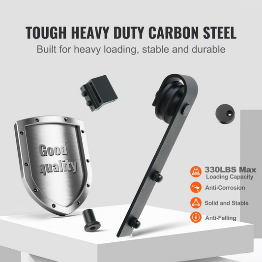 VEVOR 8FT Sliding Barn Door Hardware Kit, 330LBS Heavy Duty Barn Door Track Kit for Double Doors, Fit 3.7-4.3FT Total Wide and 1.3"-1.8" Thick 2 Door Panel, with Smooth & Silent Pulley (J Shape)