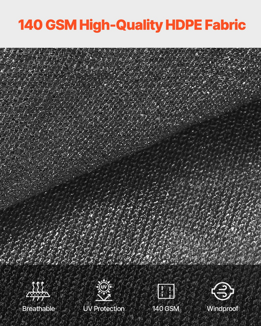 VEVOR 90% Sun Shade Cloth, 10 x 10 ft Pergola Shade Cover with Stainless Steel Grommets, Sun Shades Canopy Privacy Screen with 140 GSM HDPE Material, for Outdoor, Patio, Garden, and Backyard (Black)