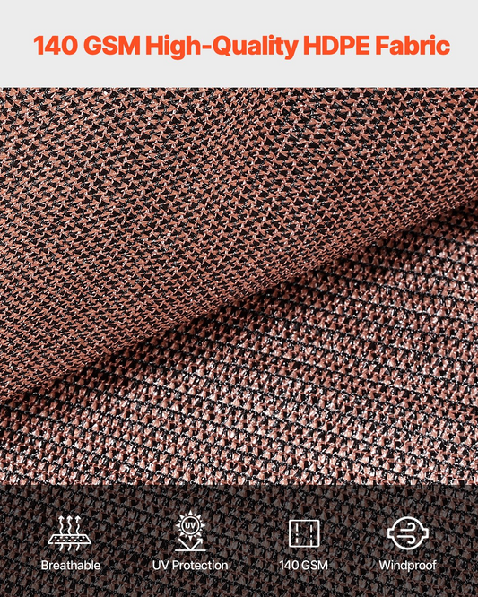 VEVOR 90% Sun Shade Cloth, 8 x 12 ft Pergola Shade Cover with Stainless Steel Grommets, Sun Shades Canopy Privacy Screen with 140 GSM HDPE Material, for Outdoor, Patio, Garden, and Backyard (Brown)