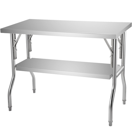 VEVOR Commercial Worktable Workstation 48x30 Inch Folding Commercial Prep Table, Double-Shelf Stainless Steel Folding Table, Kitchen Work Table with 772 lbs Load Silver Stainless Steel Kitchen Island