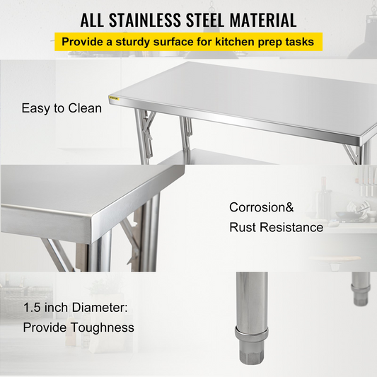 VEVOR Commercial Worktable & Workstation 24 x 30 x 32 Inch Stainless Steel Work Table Heavy Duty Commercial Food Prep Work Table for Home, Kitchen, Restaurant Metal Prep Table with Adjustable Feet