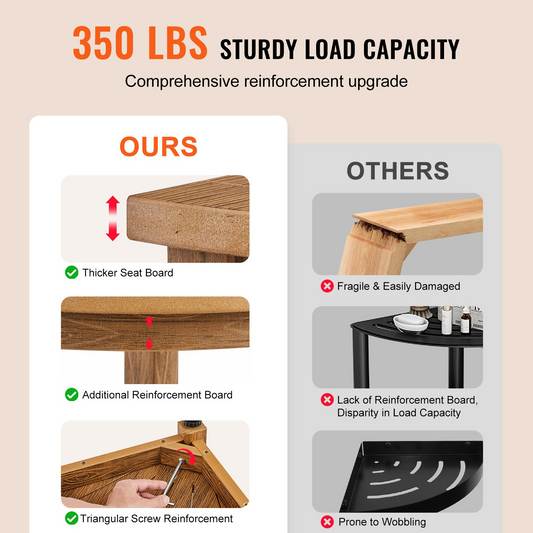 VEVOR Corner Shower Bench, 16.5" Height 12.8" Radius, Faux Wood Grain Polystyrene, 350 LBS with Storage Shelf, Water Resistant, Shower Stool for Inside & Outside Shower, for Bathroom, Living Room