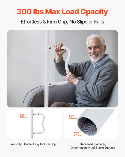 VEVOR Floor-to-Ceiling Transfer Pole, Tension Mounted Bathroom Grab Bar with Anti-Slip Curve Handle, 300 Lbs Capacity Security Pole for Elderly, Ideal Senior Safety Pole for 7-10 Ft Ceilings, White