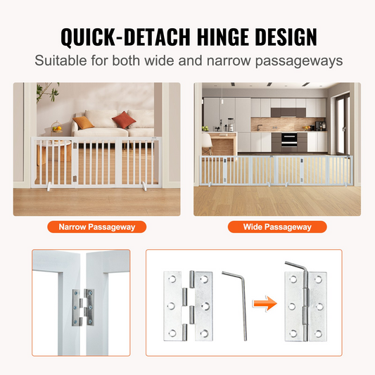 VEVOR Free Standing Dog Gate, 32" H x 96.5" W Freestanding Pet Gate, 4 Panels Foldable Dog Gate for Wide and Narrow Passageways, Expandable Dog Barrier with Silent Foot Support for Indoor, Brown