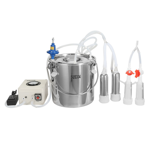 VEVOR Goat Milking Machine, 6 L 304 Stainless Steel Bucket, Electric Automatic Pulsation Vacuum Milker, Portable Milker with Food-grade Silicone Cups and Tubes, Adjustable Suction for Cows and Sheep