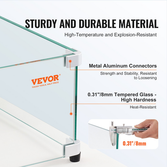 VEVOR Glass Wind Guard for Rectangular Fire Pit Table 36 x 16 x 7.5 Inch, 0.31 inch Thick and Sturdy Tempered Glass Panel with Hard Aluminum Corner Bracket & Rubber Feet, Easy to Assemble