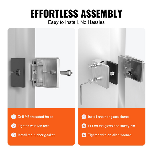 VEVOR Glass Clamp, 4 PCS Square Glass Railing Bracket for 0.31 "-0.47 " Tempered Glass, 304 Stainless Steel Glass Mounting Clamp, Glass Shelf Bracket for Balcony, Garden, Pool, Stair, Silver