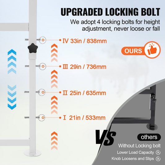 VEVOR Goat & Sheep Stand, 47x23 inch Livestock Stand, Metal Livestock Milking and Shearing Stand 21" to 33" Adjustable Height, with Headpiece and Nose Loop, 500lbs Loading Weight, White