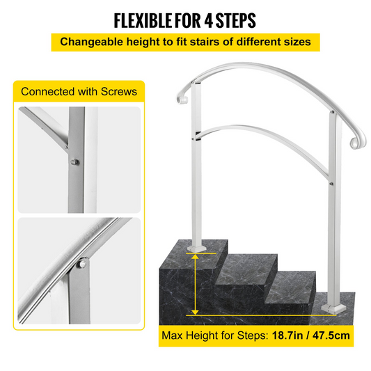 VEVOR Handrails for Outdoor Steps, Fit 1 or 4 Steps Outdoor Stair Railing, White Wrought Iron Handrail, Flexible Front Porch Hand Rail, Transitional Handrails for Concrete Steps or Wooden Stairs