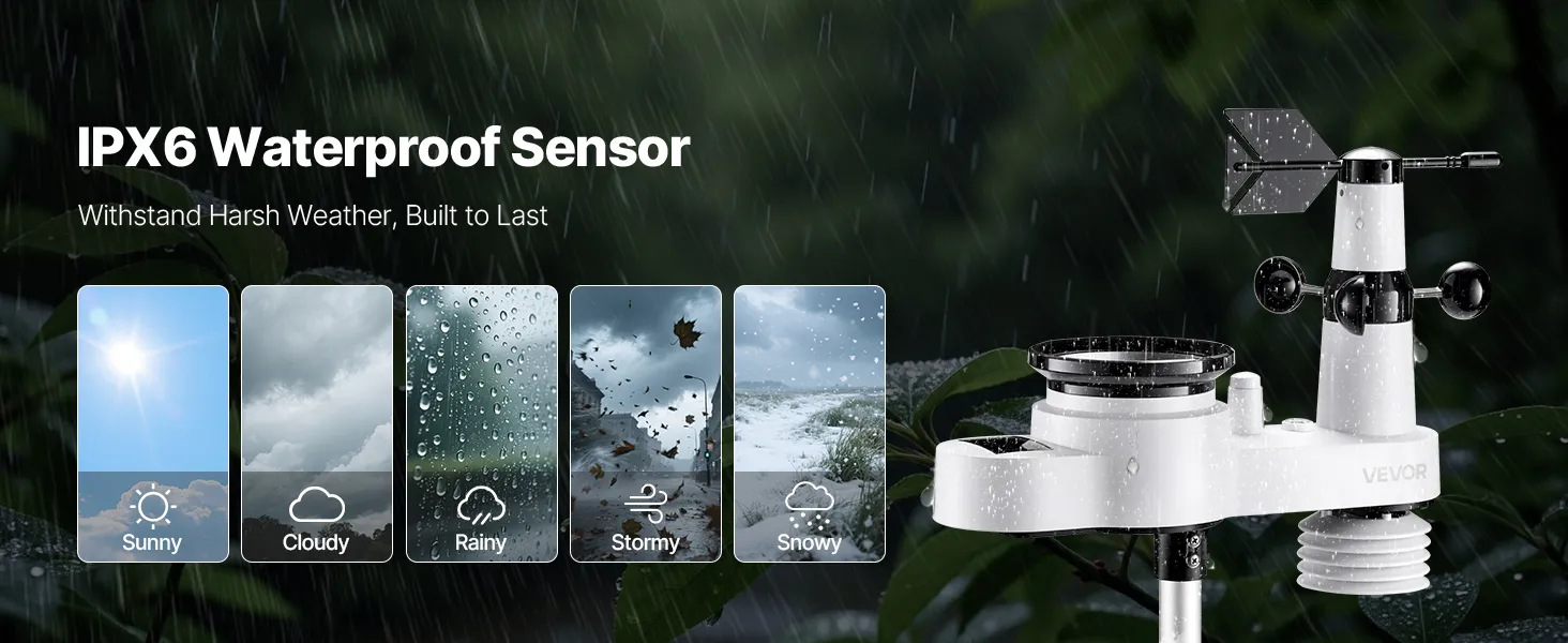 - 492 ft Transmission Distance: Install your outdoor sensor wherever you need it—on rooftops, farms, or gardens. With an IPX6 waterproof rating, this outdoor sensor delivers reliable data even in heavy rain