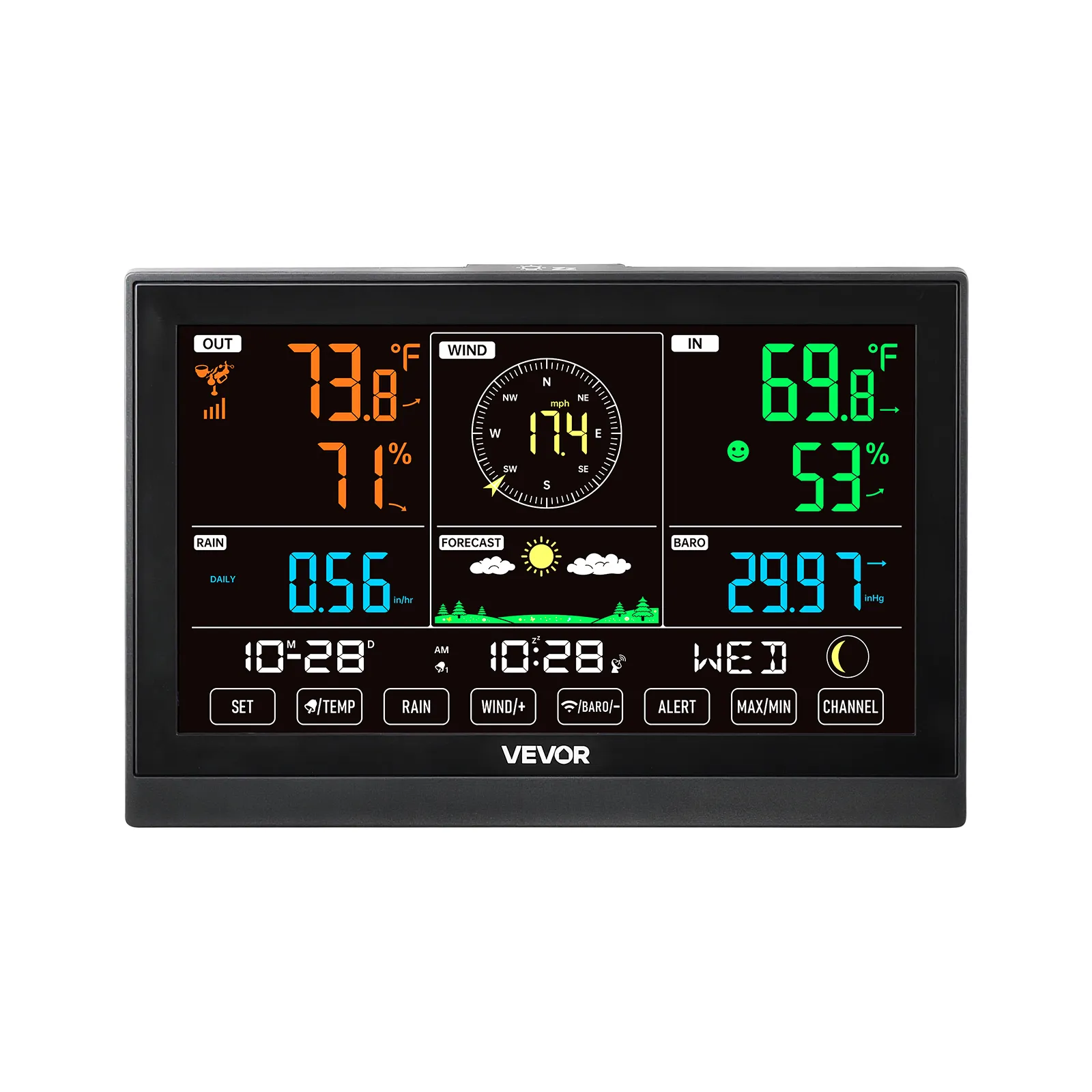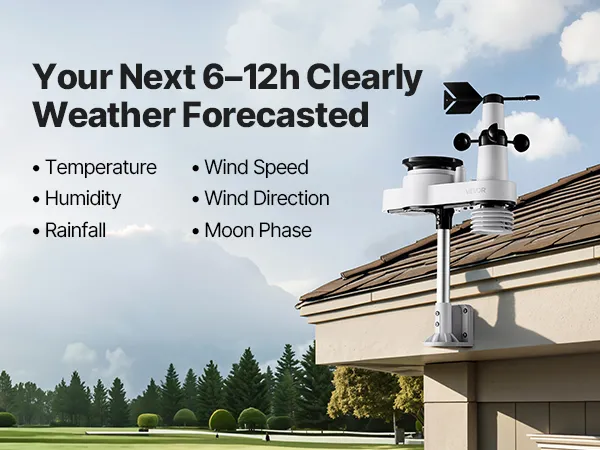 - 5-in-1 Outdoor Sensor: Monitor temperature, humidity, rainfall, wind speed, and direction—plus dew point, moon phases, and 6-12 hour forecasts. Get weather information you need to plan smarter from home with our wireless weather station