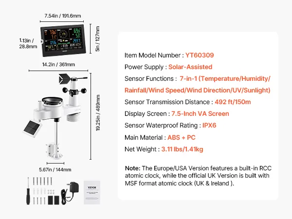- 7.5-Inch HD Display: Enjoy a crystal-clear view of all your weather data with our indoor outdoor weather station. The large display with 4 brightness levels fits well in your living room or bedroom for day or night reading