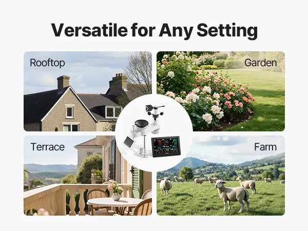 - 492 ft Transmission Distance: Install your outdoor sensor wherever you need it—on rooftops, farms, or gardens. With an IPX6 waterproof rating, this outdoor sensor delivers reliable data even in heavy rain