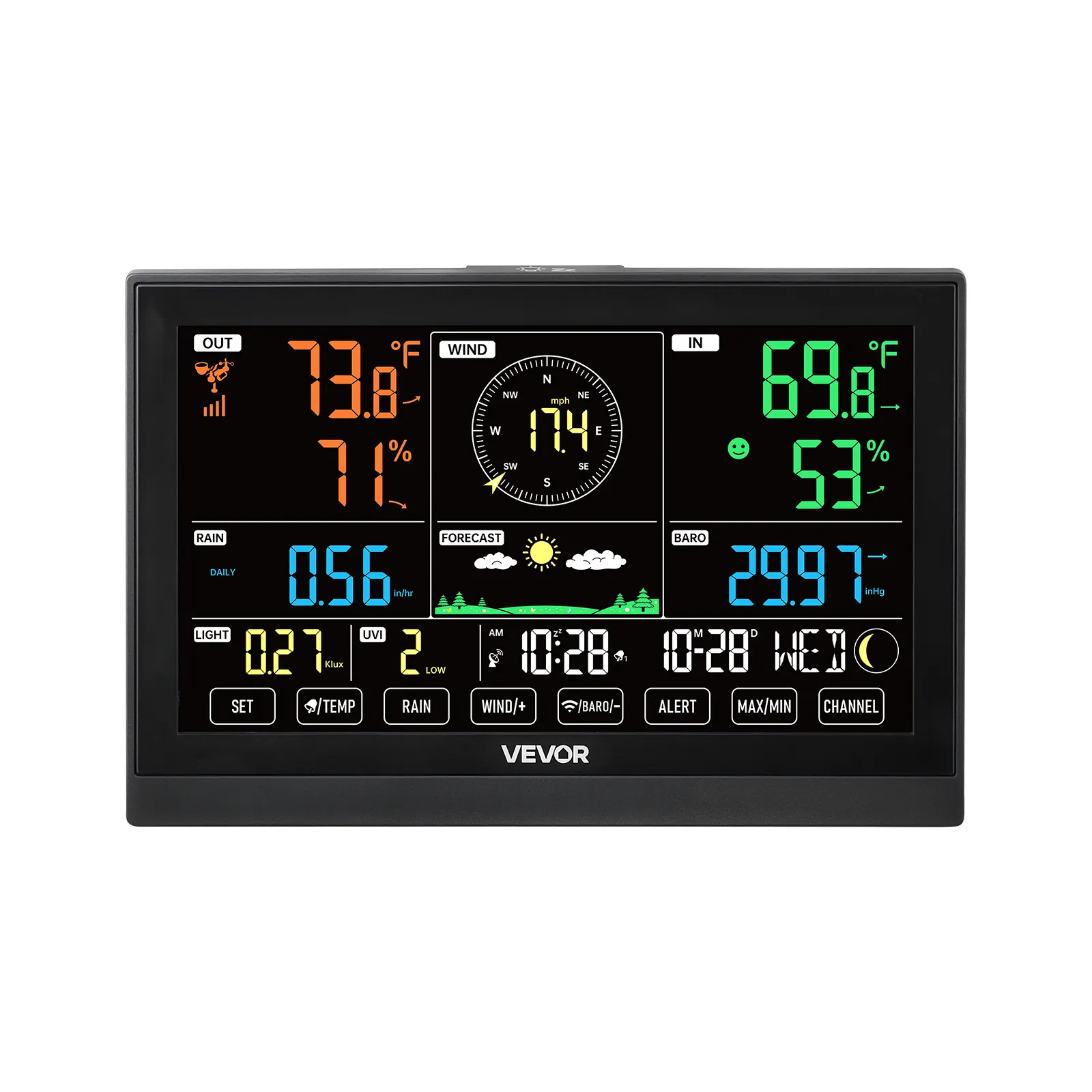 7-in-1 Wireless Weather Station 7.5 in Display Indoor Outdoor Thermometer Sensor