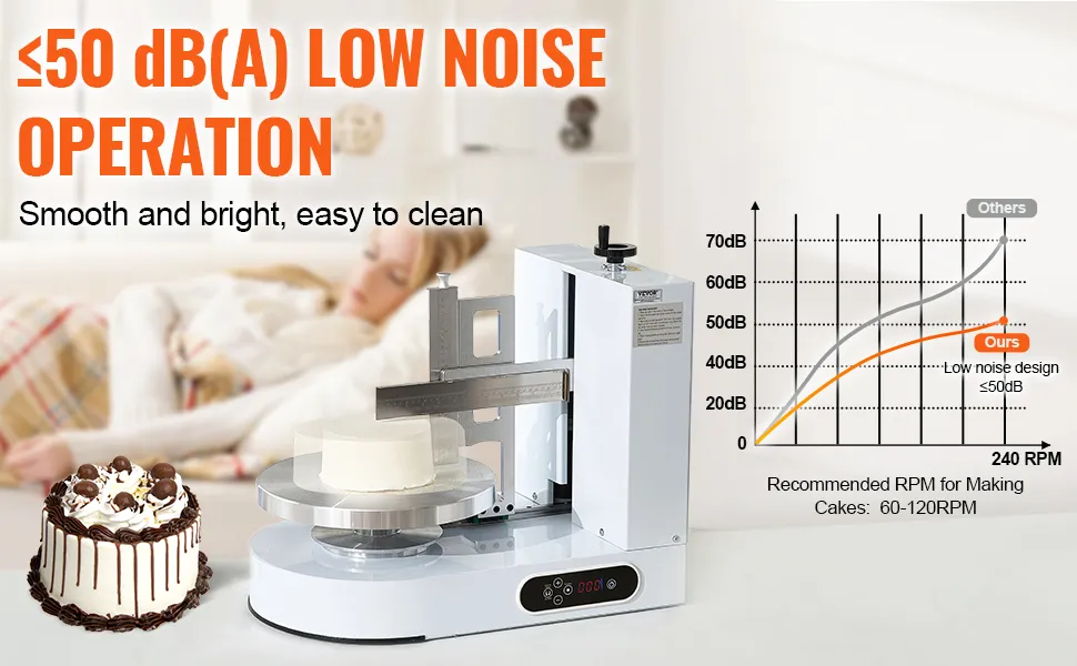- Mute and Easy to Clean: Quality technology effectively reduces noise, guaranteeing smooth cake piping. The aluminium alloy turntable and sus304 scraper with scale are clean and rust-free. The leakage protection plug can power off within 0.01 seconds for ultimate security.