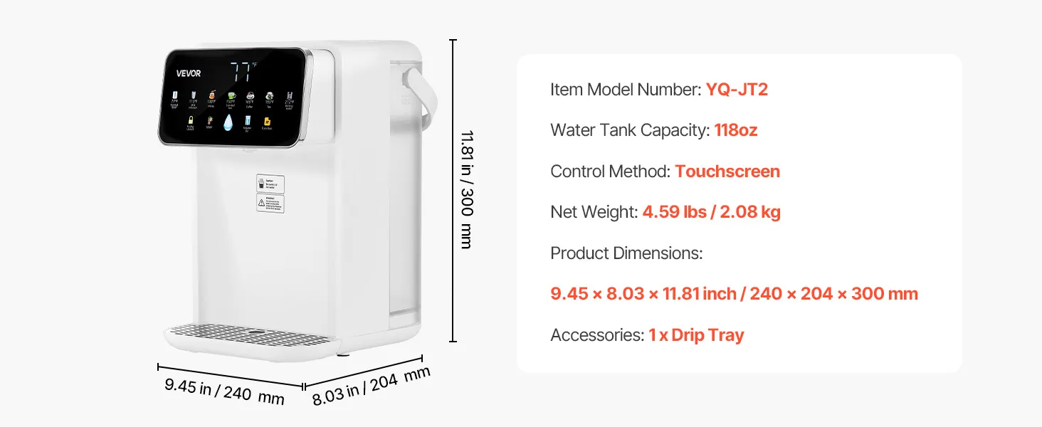 - Colorful Touchscreen Display: The LED smart display shows water temperature and volume clearly, with a touch-sensitive screen that's easy to use, making it simple for everyone in the family to operate the desktop instant hot water dispenser