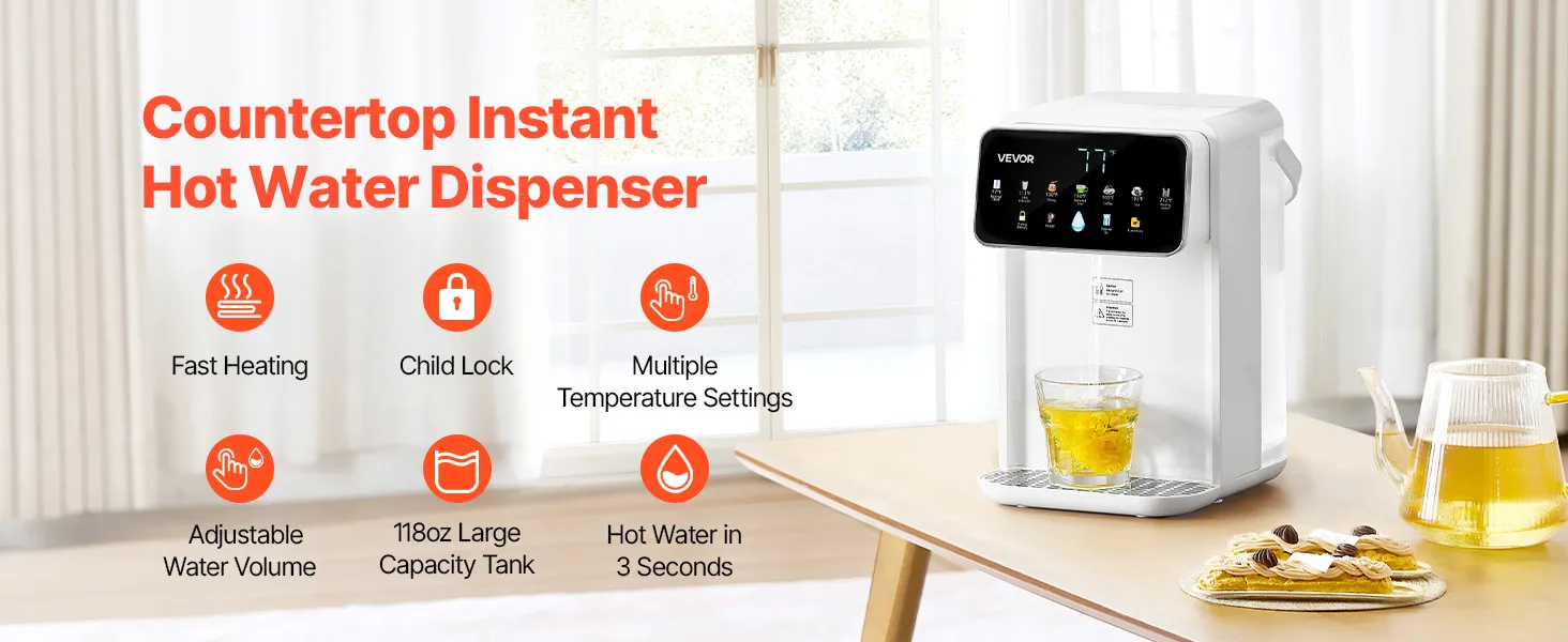 - Instant Heating: The countertop instant hot water dispenser utilizes advanced heating technology to rapidly heat water to your desired temperature, making it perfect for brewing tea, coffee, preparing baby formula, or cooking oatmeal