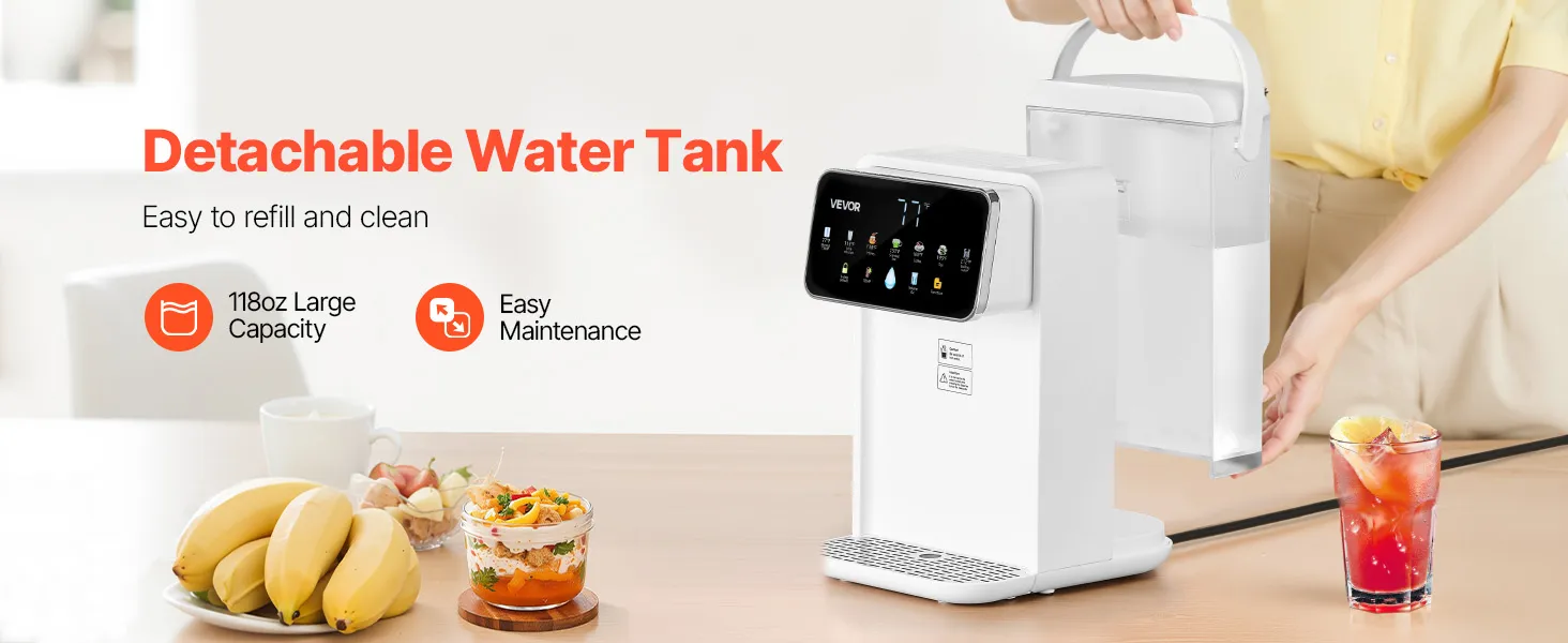 Equipped with a 118oz removable water tank, this electric hot water dispenser is easy to refill and clean, offering both convenience and practicality for daily use.