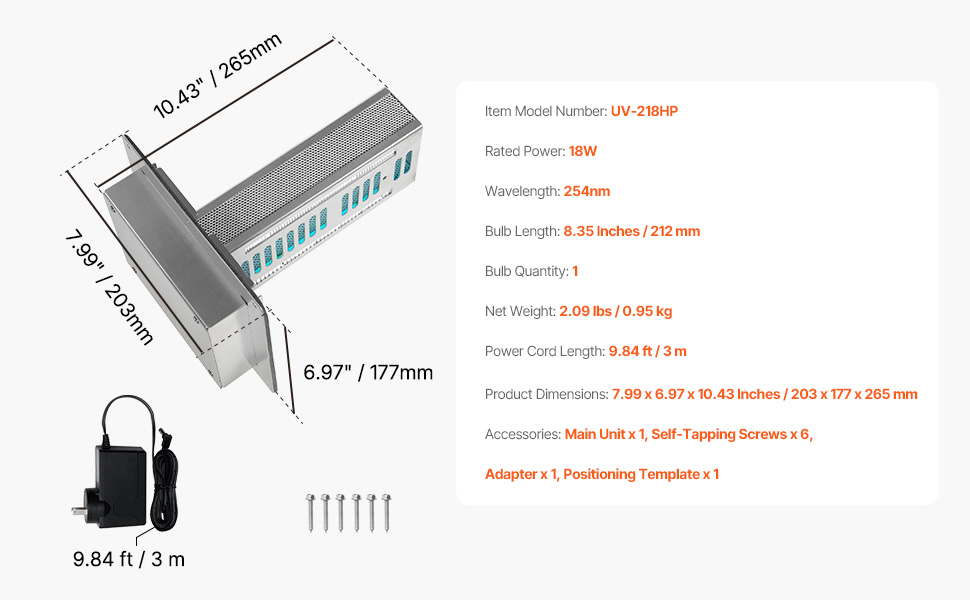 - Efficient Air Purification: The 18W 9inch HVAC Duct Purifier combines three powerful purification technologies: photocatalysis, and activated carbon, for effective air cleaning and disinfection, effectively obliterate most harmful substances from HVAC duct surfaces, improving air quality and creating a clean, healthy habitat.