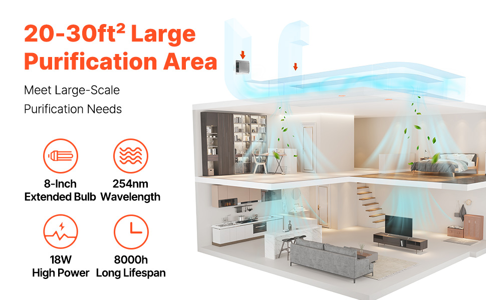 Our HVAC Duct Purifier features high power output, effectively improving air quality. The lamp tube has an extended lifespan, ensuring long-term use. Comes with complete accessories for easy installation and quick setup.